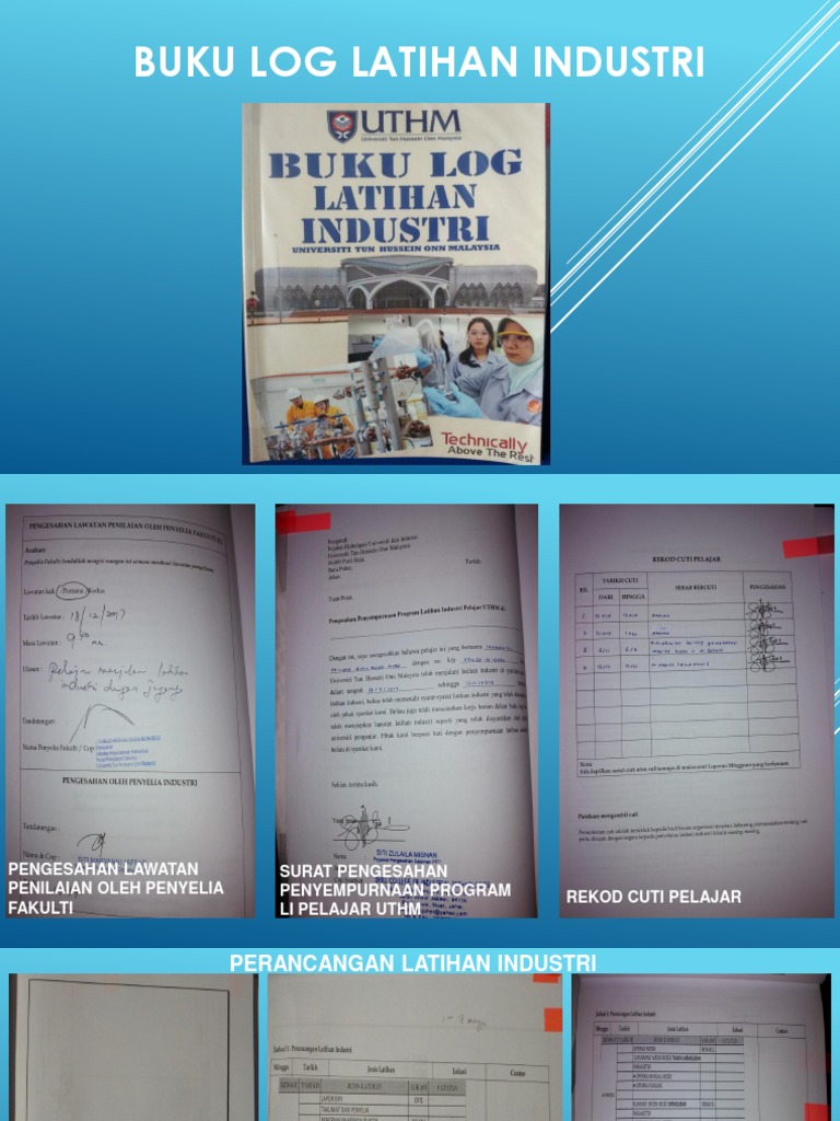 Buku Log Latihan Industri Utm. Kehilangan buku ini hendaklah dilaporkan dengan segera kepada Pegawai Perhubungan dan. Surat Permohonan Latihan Industri 23 5.