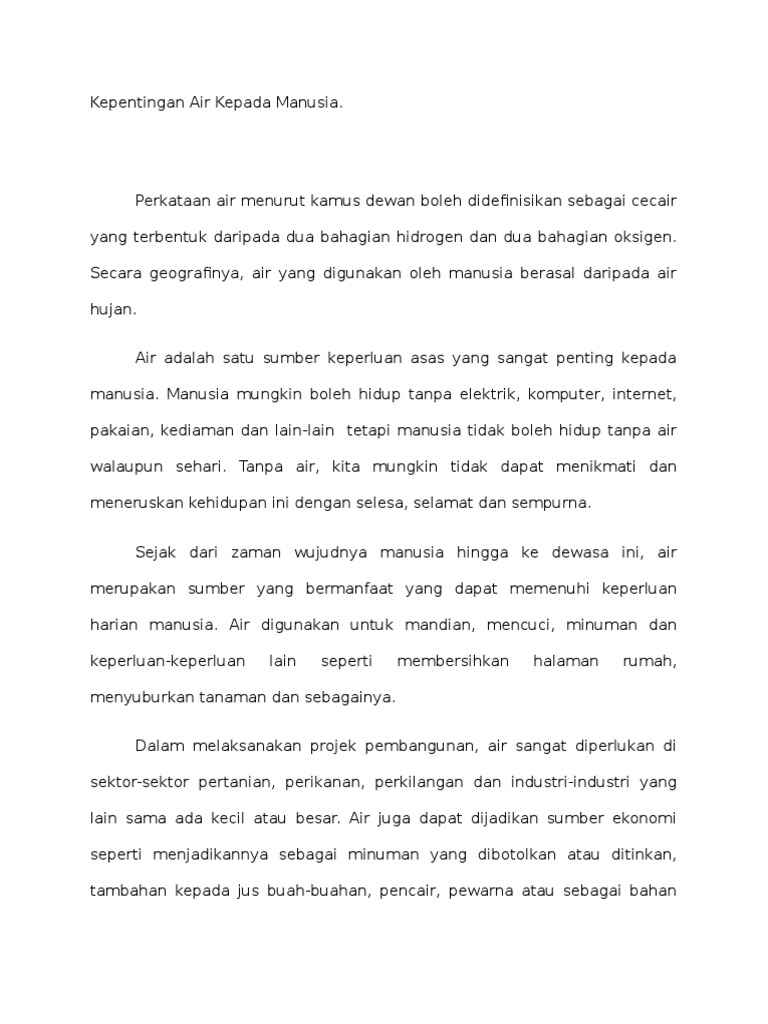 Contoh Karangan Upsr Kegunaan Air Kepada Manusia Pdf