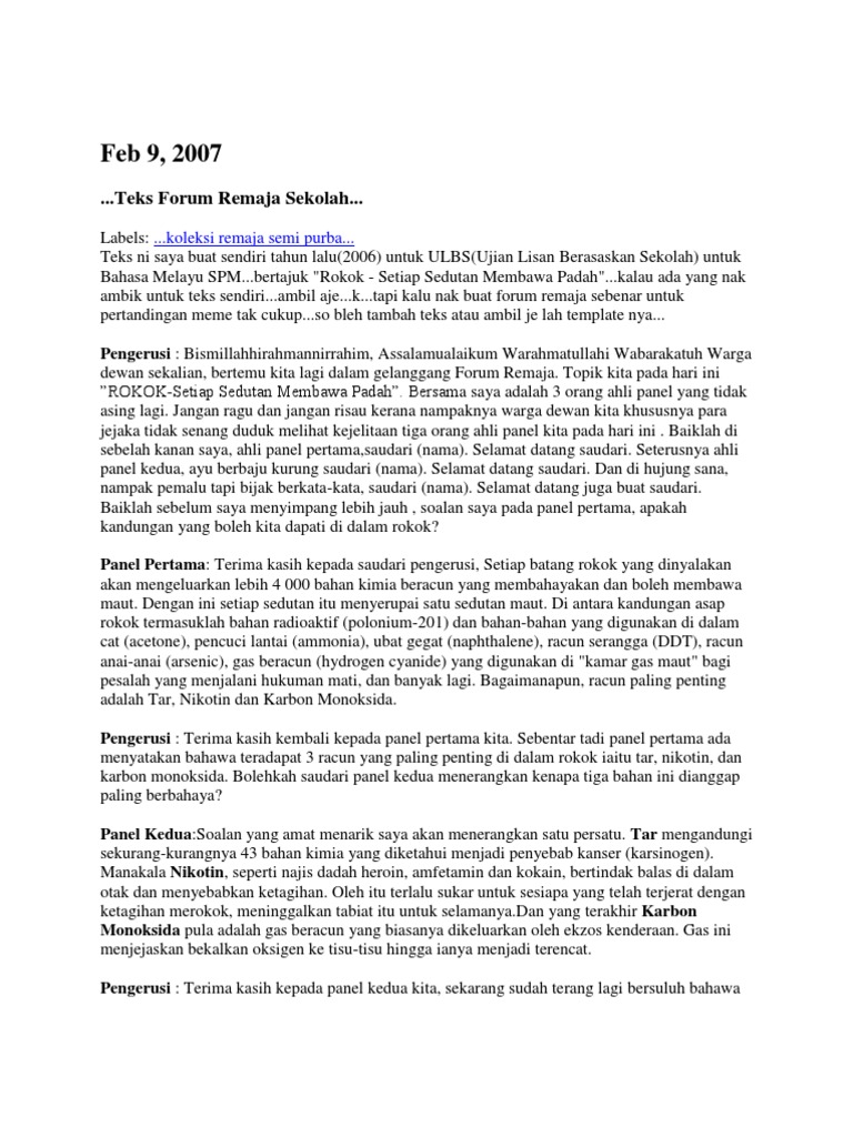 Ujian LisanBertutur Bahasa Melayu SPM. November Jun Ulangan. Contoh Teks Forum Untuk ULBS SPM Tingkatan 4 5.